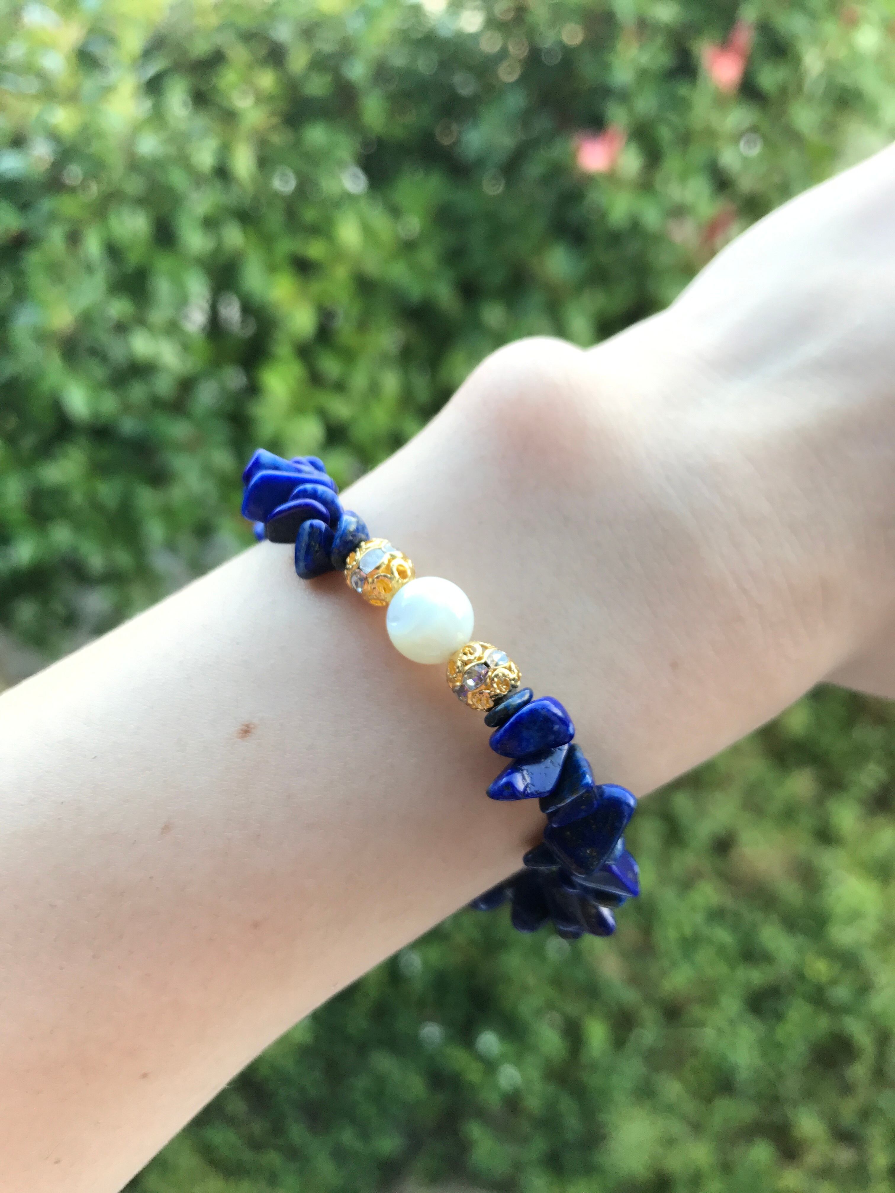 幸運を呼ぶラピスラズリとマザーオブパールのブレスレット