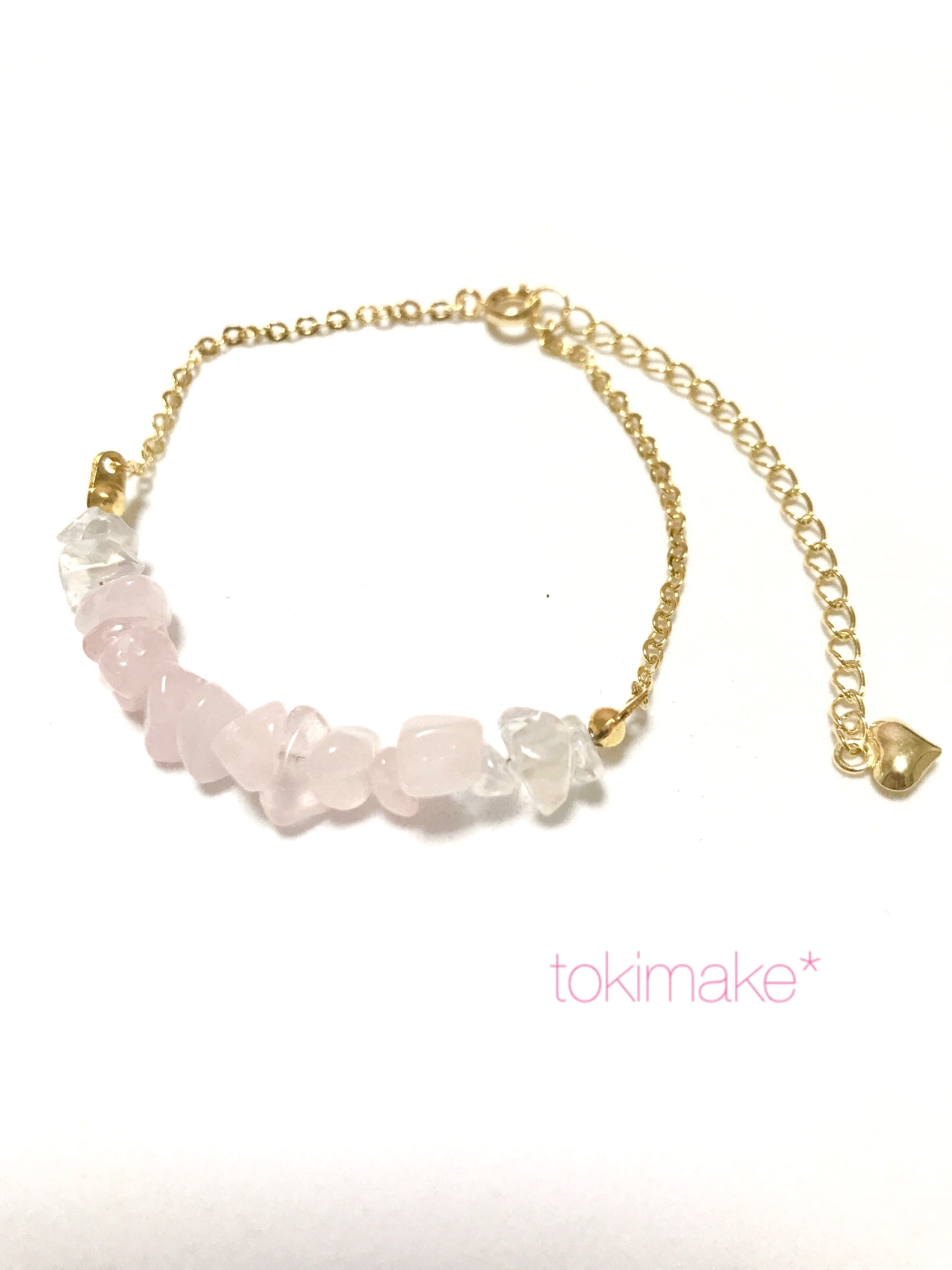 コスモオーラのきらめきの間にローズクォーツをたっぷりつかって、かわいいブレスレットを作りました☆