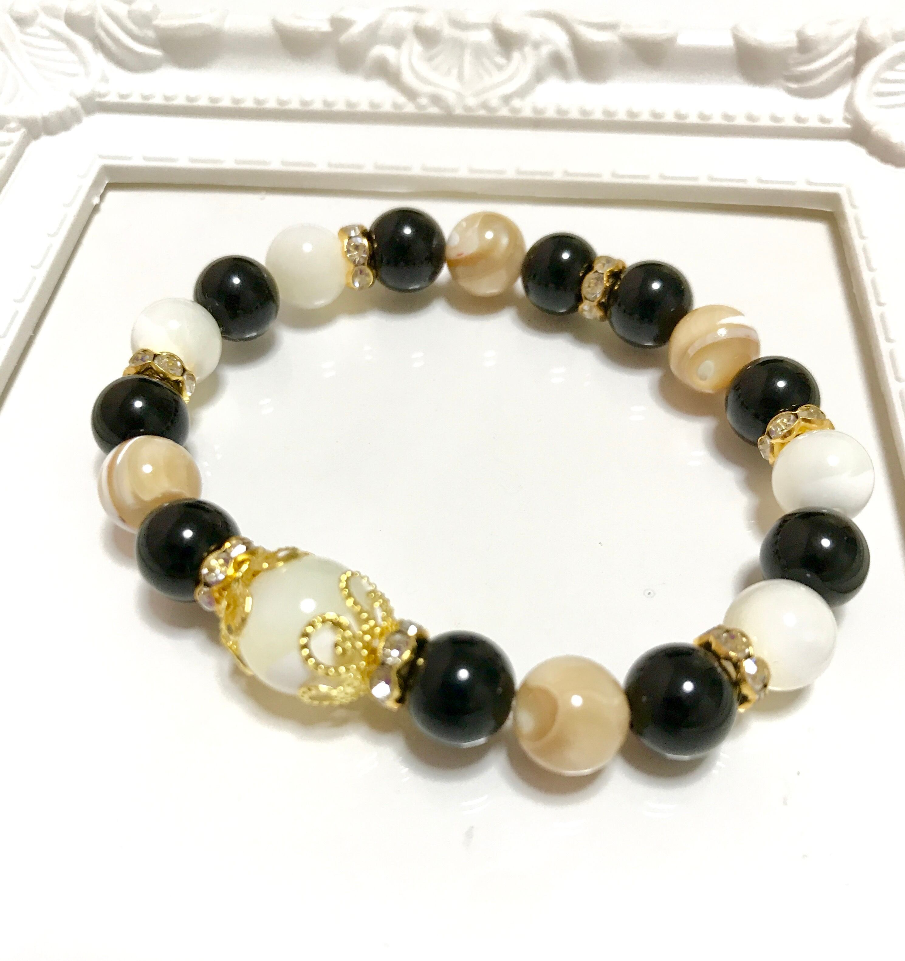 秋冬*マザーオブパールとオニキスのパワーストーンブレスレット